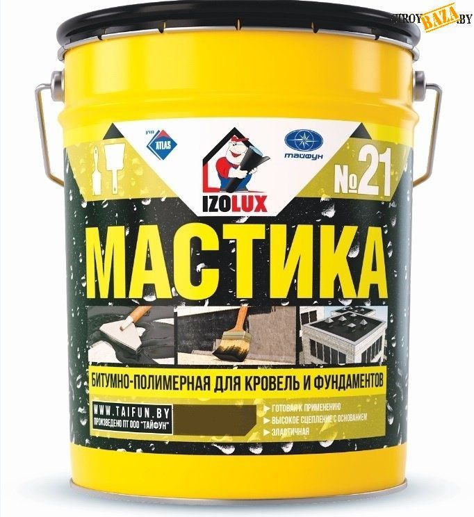 Мастика кровельная и гидроизоляционная битумно-полимерная «IzoLUX» используется для приклеивания рулонных кровельных и гидроизоляционных материалов, устройства мастичных кровель с армирующей основой, гидроизоляции строительных конструкций и сооружений, контактирующих с влажной средой.Способ применения: