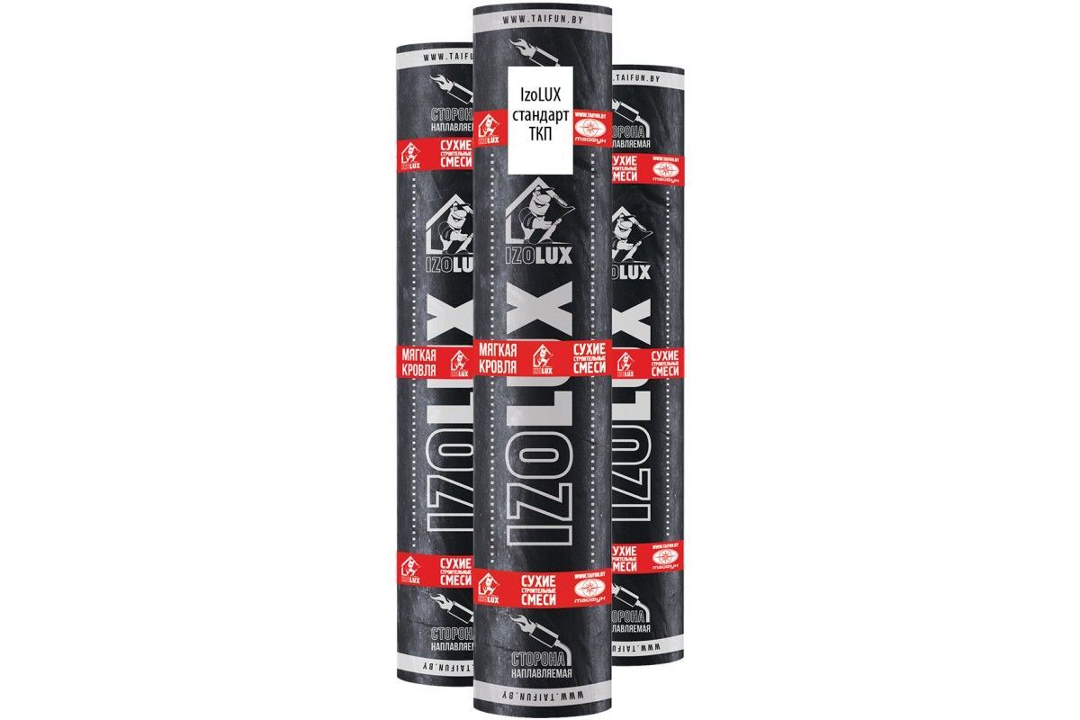 IZOLUX стандарт получают путем двустороннего нанесения на стекловолокнистую (стеклохолст, стеклоткань) основу битумного вяжущего, состоящего из битума и наполнителя, с последующим нанесением на обе стороны полотна защитных слоев. В качестве защитных слоев используют крупнозернистую (асбагаль) посыпку и полимерную пленку.Особенности