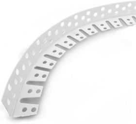 Угол ПВХ арочный 3м толщиной 0.8 мм. Применяется для внутренних работ - устройства углов на арках, изгибах и т.д. Для удобства угол можно сначала пристрелить степлером, а после начать затягивать шпатлевкой.Задать вопрос