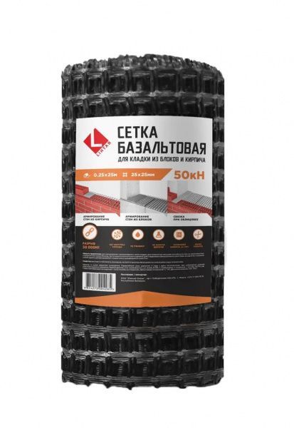 Сетка Базальтовая 37см*25м яч.2525 для кладки Lihtar Рулон, РФ