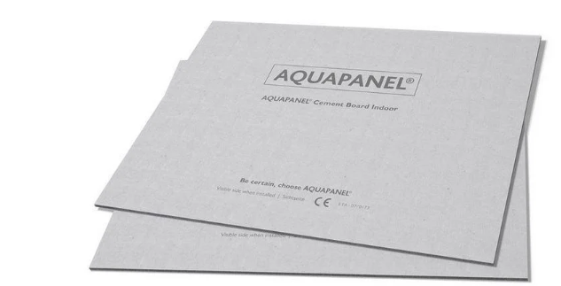 Цементная плита Аквапанель Универсал (Aquapanel Universal) - легкая и надежная цементная плита для применения в строительстве для обишвки внутренних и наружных конструкций. Для внутреннех обшивки плита применяется в качестве основания для облицовки плиткой, высота стен при этом максимальна 2750 мм, вес плитка - 30 кг/м.кв. стены.