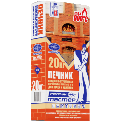 Растворная сухая смесь жаростойкая «Тайфун Мастер» ПЕЧНИК предназначена для кладки и оштукатуривания стен печей, каминов, барбекю, дымоходов из керамического и шамотного кирпича и других огнеупорных материалов. Для внутренних и наружных работ.