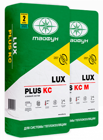 Люкс Плюс КС – универсальный клей для приклеивания и армирования утеплителей из пенополистирола и каменной ваты. Хорошее соотношение цена-качество. Средний расход: мешок 25 кг – 5 м.кв. (приклеивание), 9 м.кв. (армирование). Производство РБ.